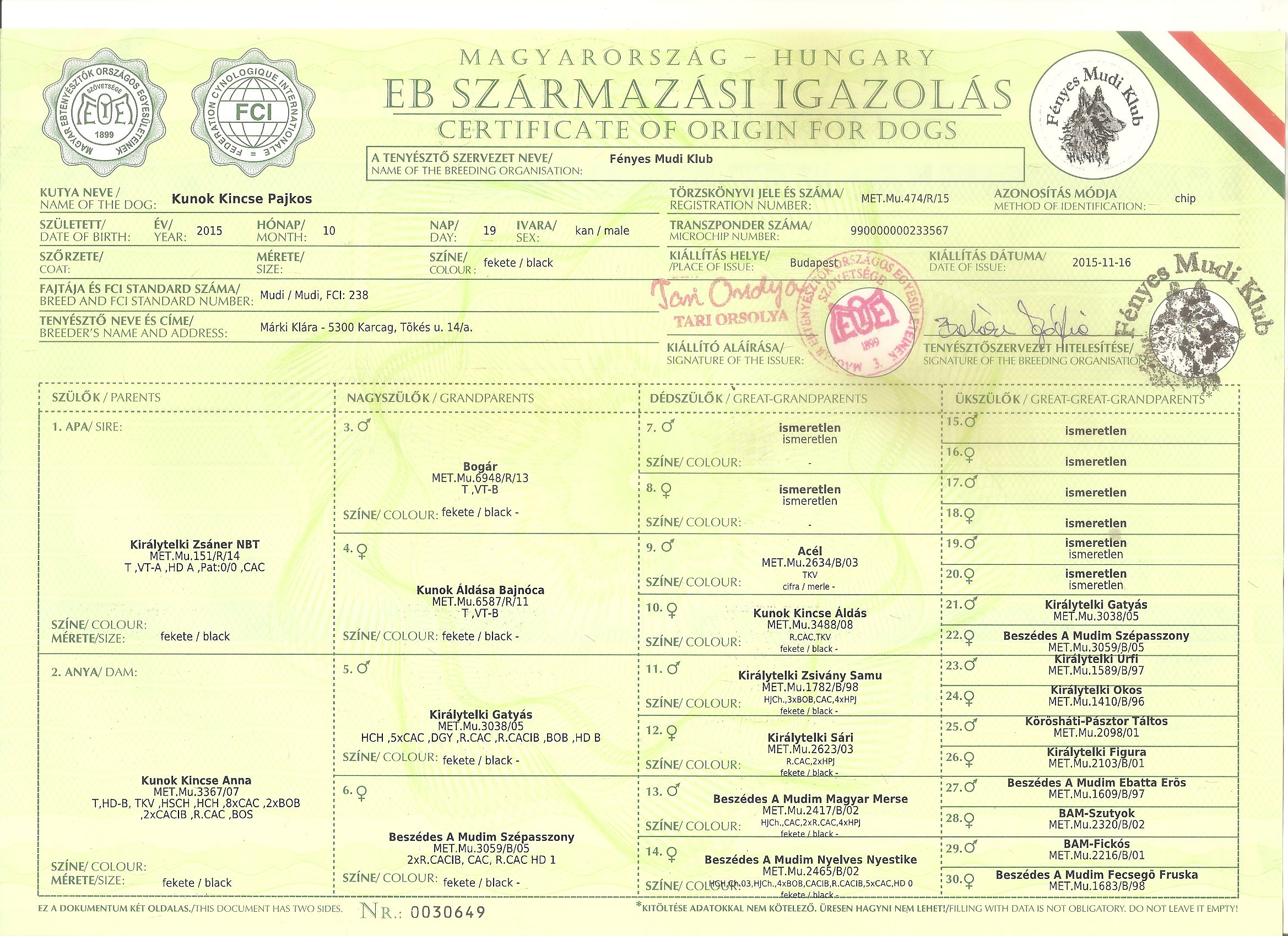 Pajkos Pompás testvére. Itt szintén meg tudom említeni a nagyon értékes genetikát amivel rendelkeznek .A tenyészetemet mindenképp ezen a vonalon kívánom folytatni legalábbis fő vonalként használni. Pajkos nagyon szófogadó intelligens ,rendes mudi . Nagyon jó házőrző viszont a pórázt nem kedveli ,ezért is van,hogy kevés kiállításon vesz részt. Munkája főként a tehenek terelésére korlátozódik. Ő mindig munkára kész mudi.